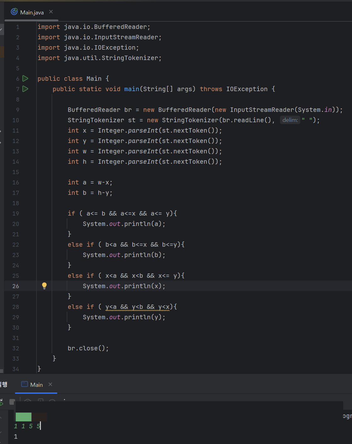 [백준_자바/Java] 1085번 직사각형에서 탈출 본문